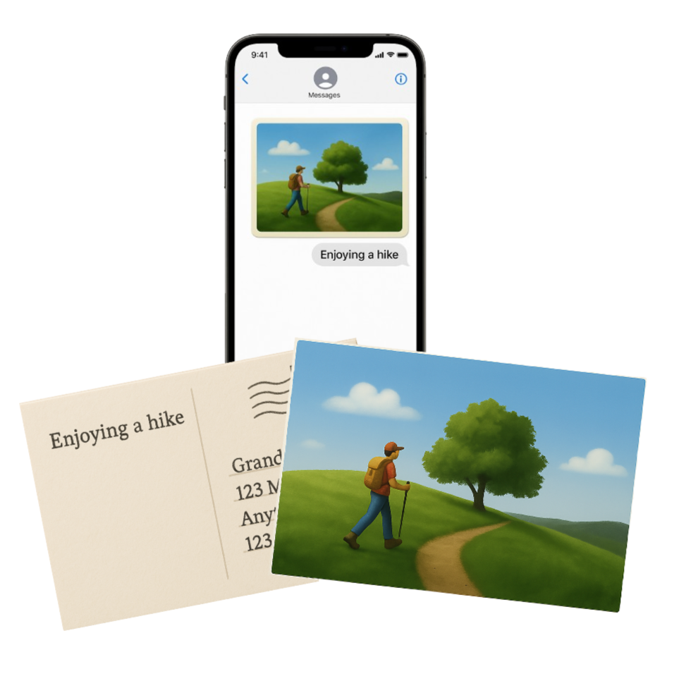 Just respond to the text. No app. No login. We’ll print and mail a beautiful postcard for you — automatically.3. They Receive a Real Keepsake